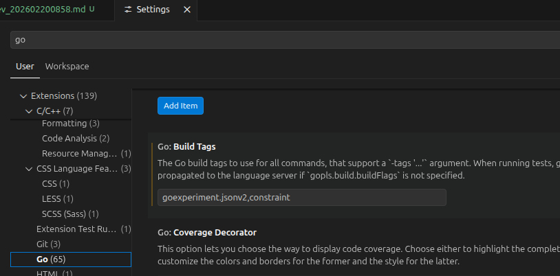 Go:Build Tags 添加 constraint tag,编辑器才会将 //go:build constraint 标记的go文件添加在项目中高亮显示,同时会实时做 接口实现约束 的检测工作,建议在开发环境中正确设置,方便有效的进行项目开发。// file: https://github.com/rocboss/paopao-ce/blob/v0.6.0-alpha.3/internal/dao/search/bridge.go